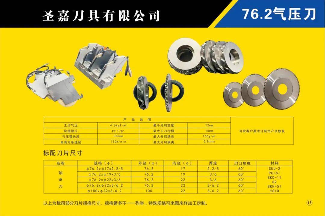 本公司所生產(chǎn)的各種型號(hào)規(guī)格分切、分條、分紙、復(fù)卷機(jī)圓刀片(蝶形上刀片、上刀架、下刀片、隔片、隔套、底棍、復(fù)卷刀、碗形刀、刀圈、大回旋圓切刀、砂輪、壓花輪、折疊刀、齒刀、異形刀)橫切刀、裁切刀、熱切刀、粉碎刀、切粒刀、撕碎刀、折頁刀、開槽刀、油墨刮刀、切臺(tái)圓刀、三孔刀、切管刀、氣壓刀組、剪切刀組、熱切刀組廣泛適用于造紙、紙制品加工、膠粘帶制品、薄膜、電線電纜、橡膠、輪胎、鋁箔、化纖、非織造布、復(fù)合包裝、卷煙、皮革、印刷、服飾輔料等行業(yè)。
